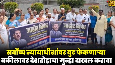 सर्वोच्च न्यायाधीशांवर बुट फेकणाऱ्या वकीलावर देशद्रोहाचा गुन्हा दाखल करावा सोलापूर:भारताचे सर्वोच्च न्यायालयातील सर्वोच्च न्यायाधीश भूषण गवई यांच्यावर बुट फेकणाऱ्या सनातनी…