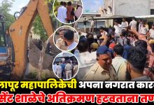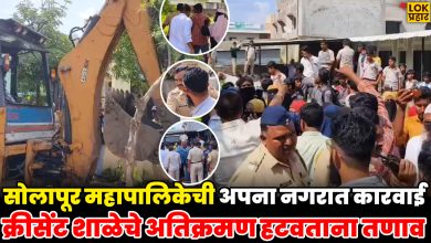 सोलापूर महापालिकेची अपना नगरात कारवाई — क्रीसेंट शाळेचे अतिक्रमण हटवताना तणाव, पोलिसांनी परिस्थिती नियंत्रणात आणली..