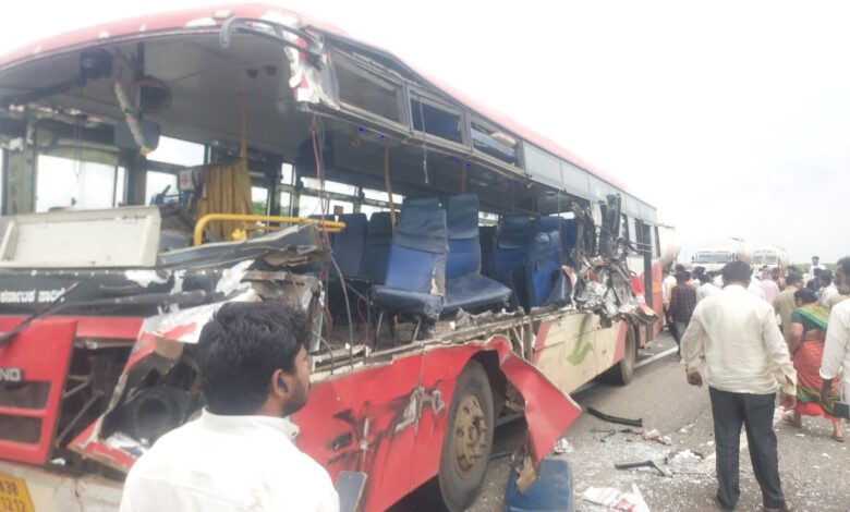 सोलापूर-हैदराबाद महामार्गावर बोरामणी गावाजवळ आज सकाळी भीषण अपघात झाला. कर्नाटक राज्य परिवहन महामंडळाची KA 38 FF 1212 क्रमांकाची बस आणि एक आयशर कंटेनर यांची समोरासमोर धडक झाली. या धडकेत १५ ते १८ प्रवासी जखमी झाल्याची प्राथमिक माहिती समोर आली आहे. तर अनेकांचा मृत्यू झाल्याची भीती व्यक्त केली जात आहे.