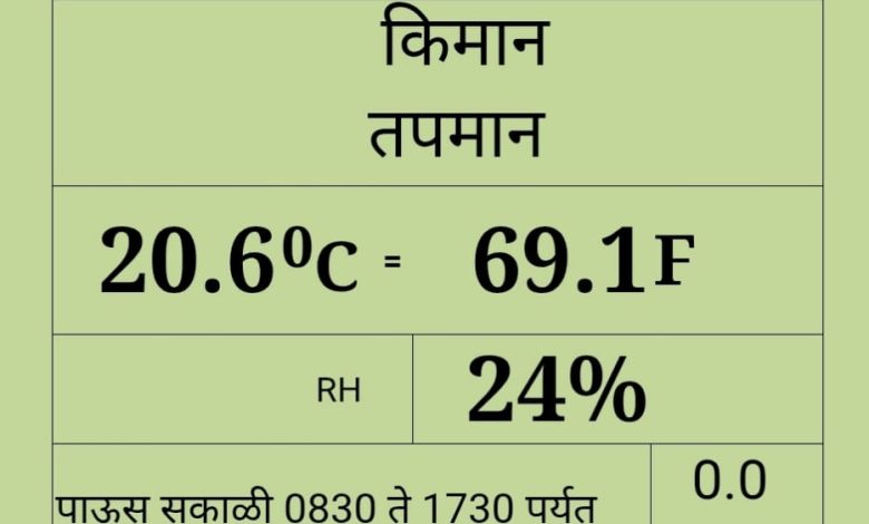 आजच्या हवामान अहवालानुसार तापमानाची आकडेवारी खालीलप्रमाणे आहे: