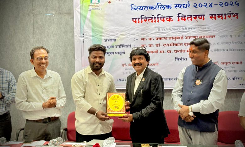 सोलापूर विद्यापीठाच्या नियतकालिक स्पर्धेत पत्रकार अनिकेत गायकवाड यांना द्वितीय क्रमांक