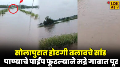 सोलापुरात होटगी तलावचे सांड पाण्याचे पाईप फूटल्याने मद्रे गावात पूर…